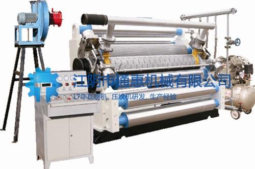 吸附式單面機采用高溫潤滑脂潤滑,方便可靠。 各導紙輥、予熱輥熱處理后,表面均經精磨并鍍硬鉻處理。預熱輥、壓力輥、瓦楞輥均符合二類壓力容器國家標準,并經專業(yè)機構驗證。